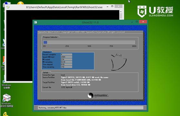 6、完成后會重啟,此時拔出U盤,將會自動進行win7系統的重裝操作;