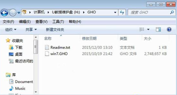 1、提前制作好一個U盤啟動盤,然后使用WinRAR等工具把win7系統鏡像中的gho文件放到U盤GHO目錄;