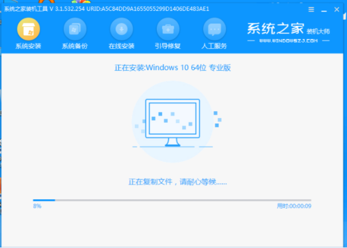 5.進入pe系統后,系統之家裝工具會自動開始安裝系統。