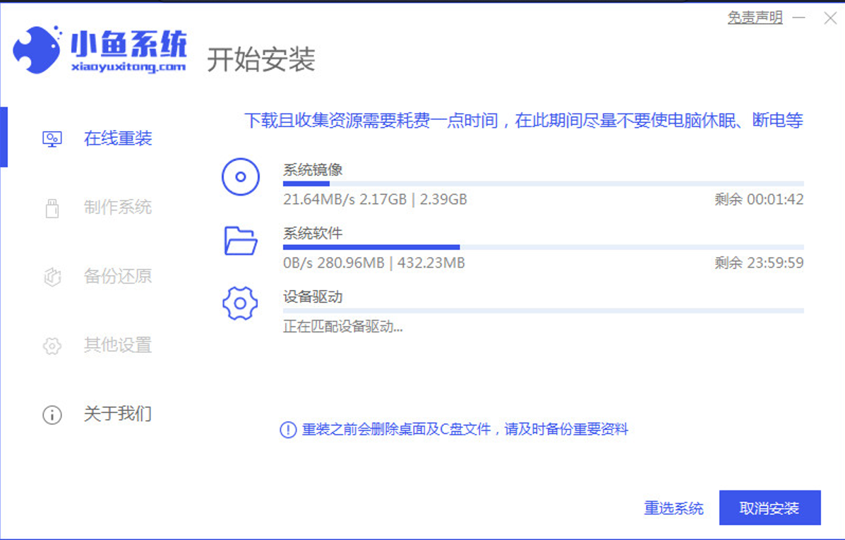 3、等待系統下載鏡像、驅動等資料。
