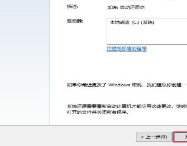5、確認還原的系統點后,點擊確定,系統將自動重啟并完成系統的還原。