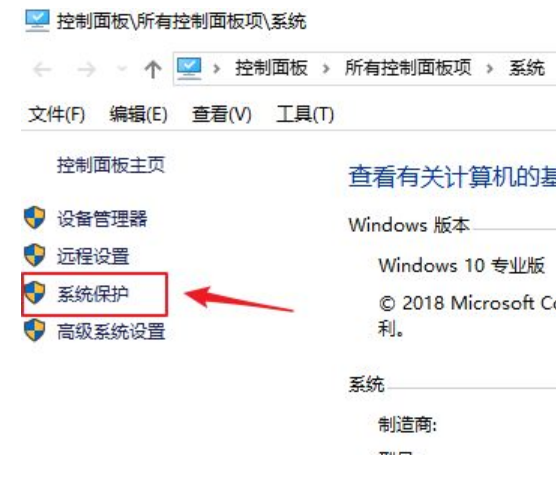 2、在屬性界面中找到系統保護選項,點擊打開系統保護。