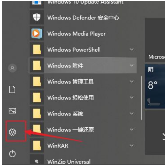 6、如果之前沒有創建系統的還原點,可以通過重置系統的方法來還原系統。首先打開開始菜單,點擊齒輪狀的設置。