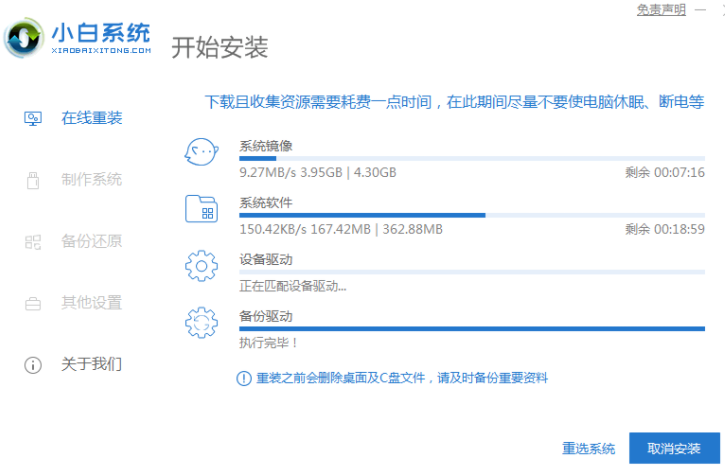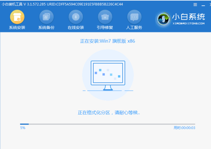 5、進入 PE 系統后小白裝機工具會自動幫助我們安裝系統,只需要耐心等候。