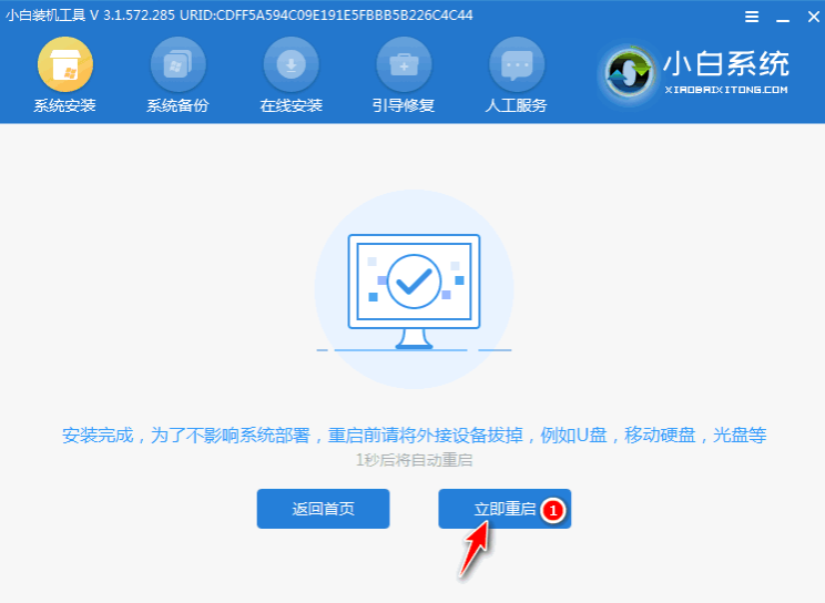 3、軟件下載完成后會自動部署,完成后會提示選擇立即重啟。