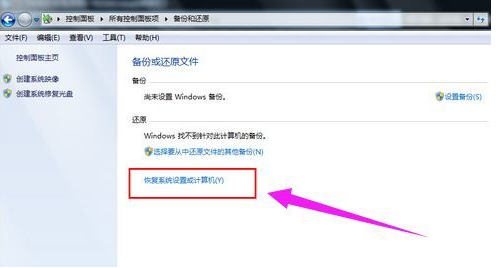 2.在接下來的界面中選擇恢復系統設置和計算機。如果電腦沒有開啟還原的功能,可能需要開啟這個功能。