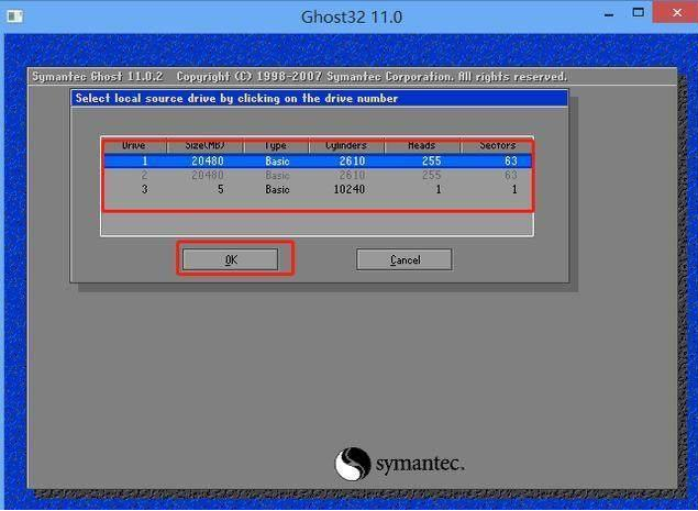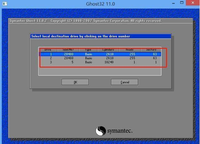(7)例如制作全盤鏡像:選擇磁盤—OK。(這里使用虛擬機演示的,虛擬機是兩塊20G的硬盤,沒有分區)