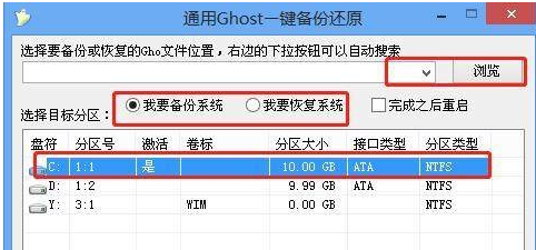 (4)還原系統:選擇要還原的分區,“瀏覽”中選擇要還原的鏡像文件,點擊“恢復選擇的分區”即可。