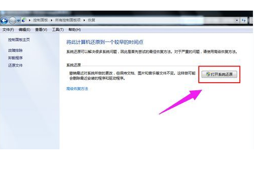 3.然后點擊:“打開系統還原”按鈕,如果有賬戶控制則會有所提示,通過即可。