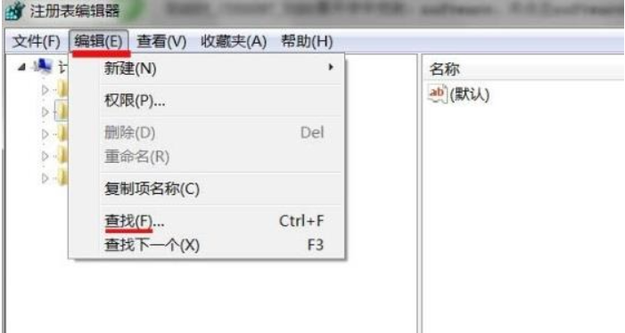 4、也可在注冊表編輯器中點擊“編輯—>查找”,找到刪除即可。