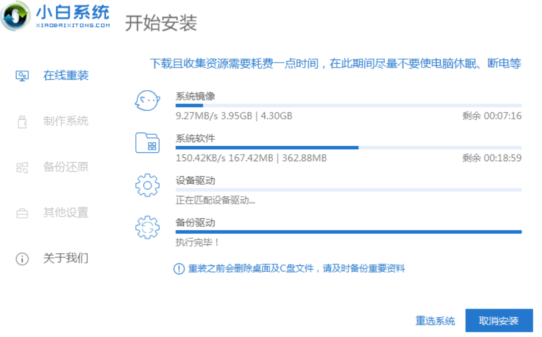 3、開始下載系統鏡像文件及驅動,此時我們耐心等待安裝完成即可。