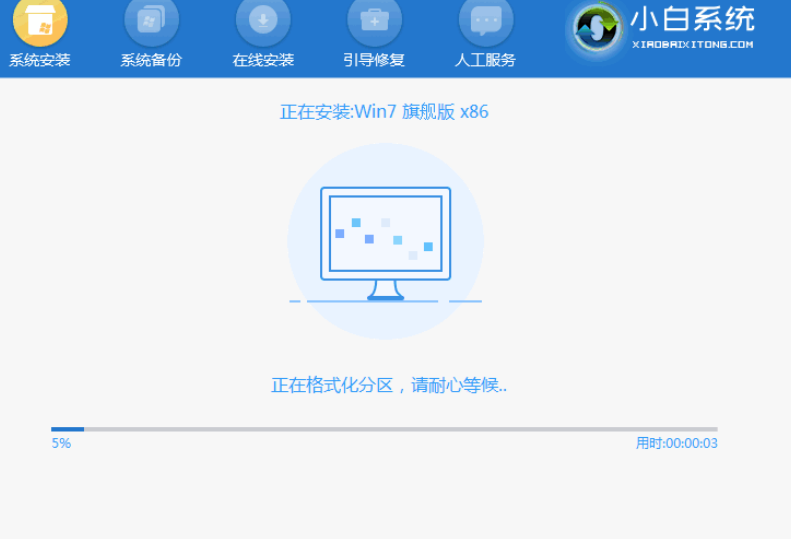6、進入之后,打開我們的小白一鍵重裝系統會進行自動安裝鏡像文件,我們只需耐心等待就好了。
