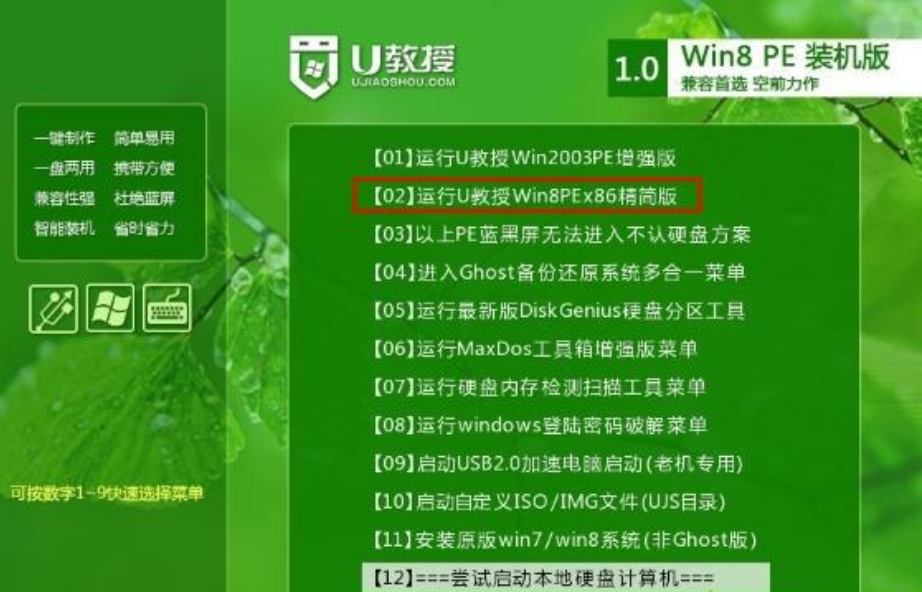 3、從U盤啟動,在主菜單中選擇【02】運行PE系統。