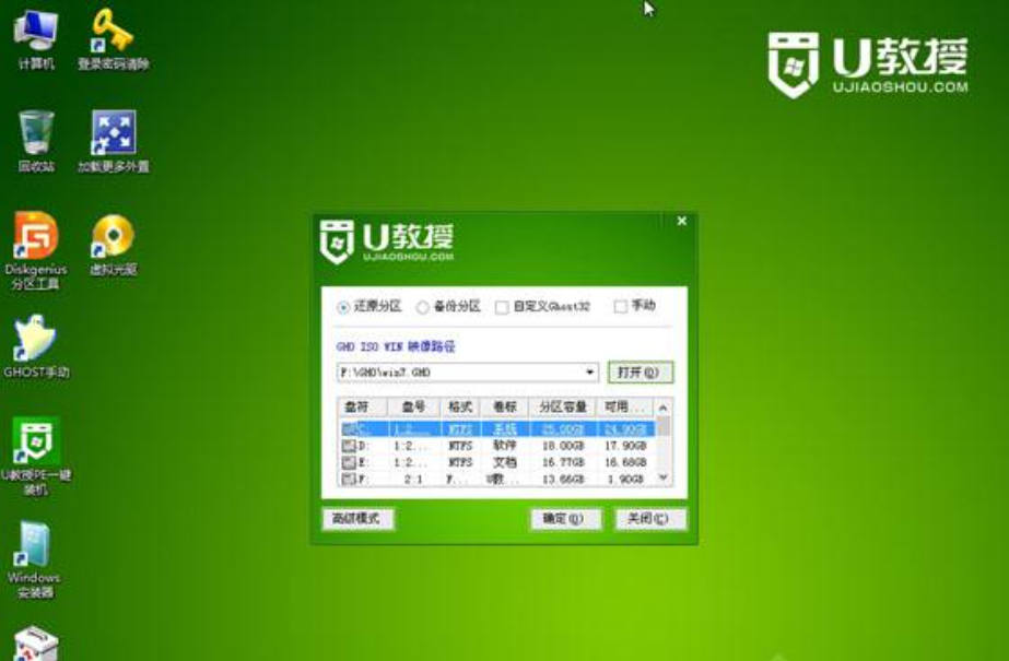 4、在PE系統中打開PE一鍵裝機,保持默認的設置即可,然后選擇要安裝的位置C盤,點擊確定。