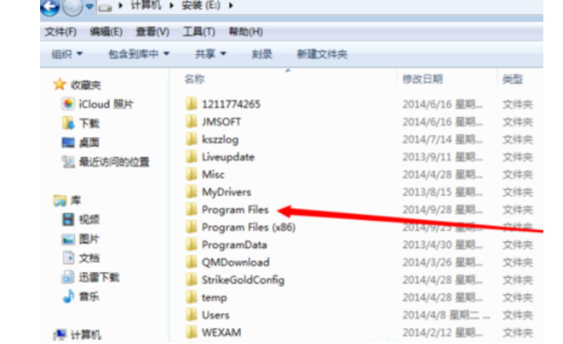 2、找到電腦中默認軟件安裝的文件夾program files,如圖所示。