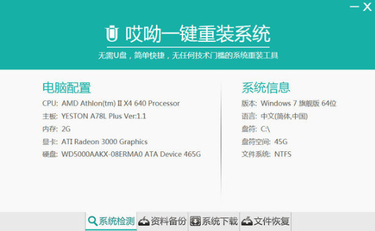 軟件版本:哎呦一鍵重裝系統大師1.1.0