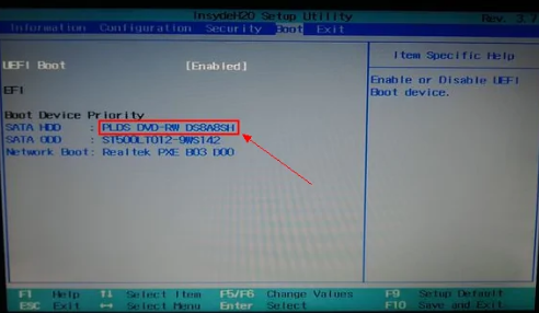 2,重啟電腦,進入BIOS,設置系統光盤為首選引導設備。