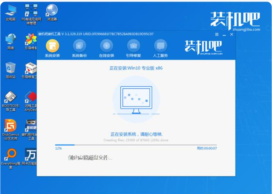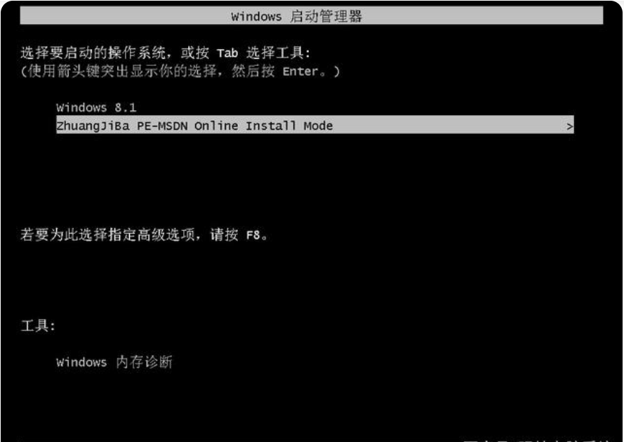 總結:下載好并打開裝機吧一鍵重裝系統,下載好進行環境部署,部署好我們重啟電腦即可。我們進入windows啟動管理器界面,選擇第二個進入電腦的pe系統。進入到到pe系統界面繼續進行安裝。安裝完成之后我們需要再次重啟電腦。