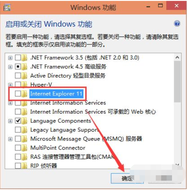3、IE瀏覽器前的勾勾去掉了,點擊確定,重啟電腦,IE瀏覽器就被卸載了。