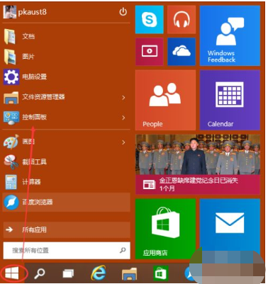 1、點擊Win系統的菜單按鈕,再點擊彈出菜單里的控制面板,如下圖所示。