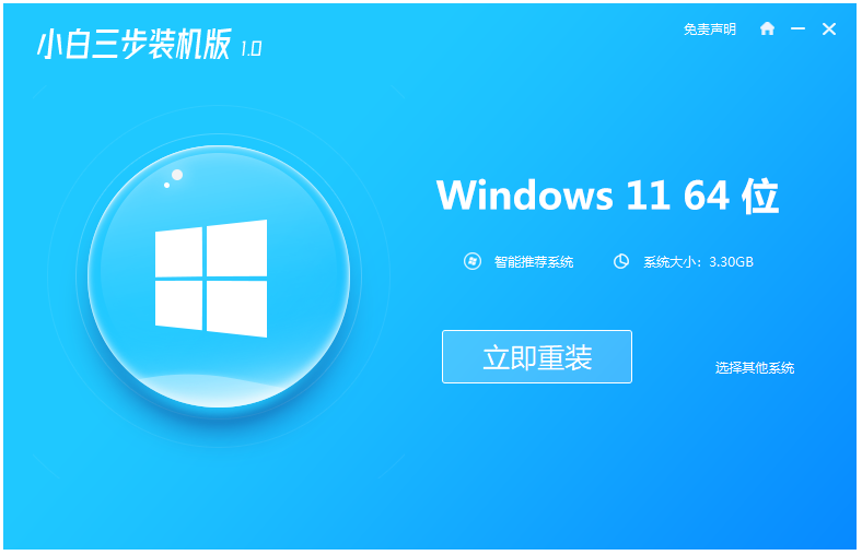 2、第二名小白三步裝機版工具,它是小白一鍵重裝官網推出的超簡單的系統重裝工具,它可以實現三步立馬重裝。主要特點有自動檢測匹配系統,一鍵重裝,支持XP/Win7/Win8/Win10以及64位和32位系統。為用戶提供了最簡單的系統重裝解決方案。
