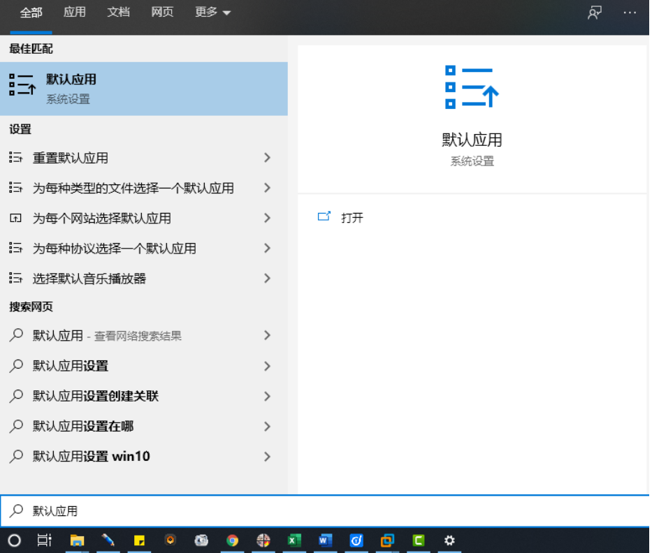 1、點擊左下角的開始菜單,然后直接鍵盤輸入“默認應用”