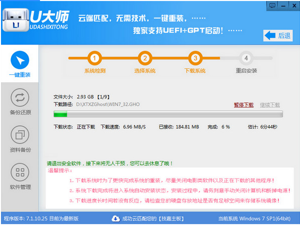 軟件版本:U大師一鍵重裝系統v7.1.10.25