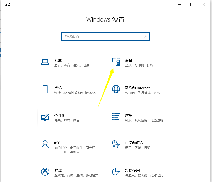 2、找到“設備”項,此項包含了藍牙,打印機,鼠標的設置。
