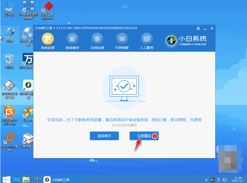 5、來到pe系統后,小白裝機工具會自動打開重裝電腦系統,無需操作。