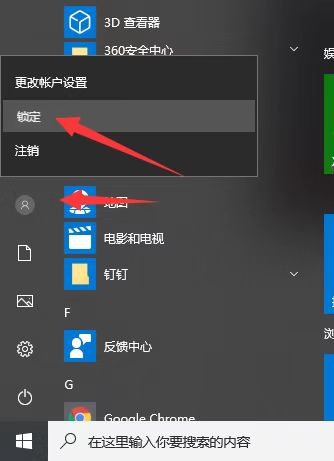 二、打開開始菜單,點擊用戶頭像,鎖定