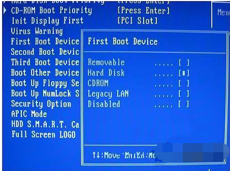 3.u盤制作完成后開始安裝系統。將U盤插入上電腦筆記本開機,啟動時按DEL(或F2)進入主板CMOS設置,然后設置第一啟動設備為USB或可移動裝置進入。