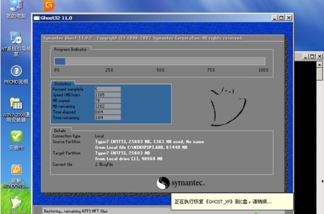 7、完成后重啟電腦,然后取出xp光盤,后面會自動執行xp重裝過程;