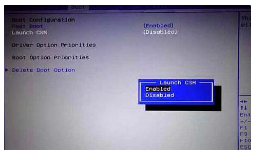 2、然后使用方向鍵移動到“boot”頁面,將“Lunch CSM”修改為“Enabled”;如圖所示: