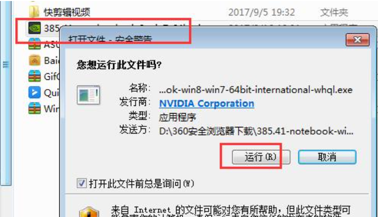 1、進入nvidia官網進行電腦驅動下載完成后點擊“運行”。