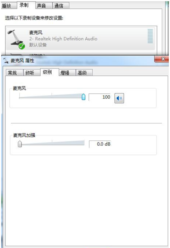 2、如果沒有聲音的是麥克風,就打開錄制,選擇麥克風,選擇級別,保持圖標正常點擊確定。