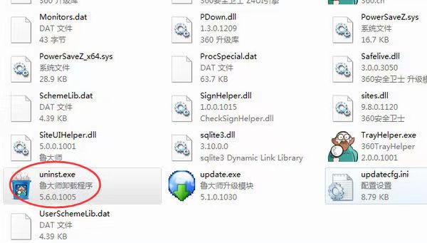 2、在魯大師安裝位置找到叫“uninst.exe”的應用程序,雙擊運行根據提示進行卸載即可。