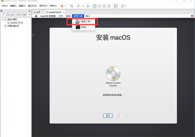 9.進入安裝界面,發現無法正常安裝,是因為沒有磁盤。所以,點擊頂部【實用工具】,選擇【磁盤工具】功能。