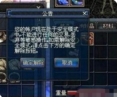 2、隨便賣一個物品給NPC就會出現解除安全模式的功能界面。