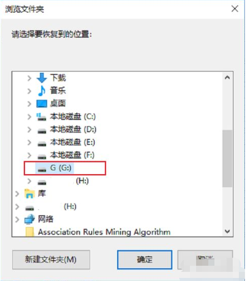 4、選擇恢復的文件存放的位置,需要注意的是,這里不能存放到相同磁盤里面,防止文件覆蓋,可以先存放到其他磁盤,再進行復制,如下圖所示: