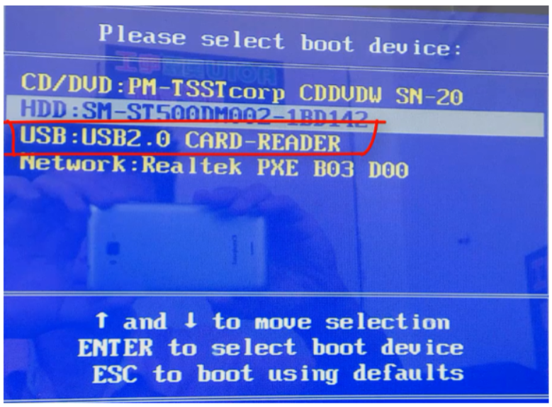 2、重啟電腦快速斷續按啟動熱鍵進入快速啟動界面,選擇帶有USB開頭的u盤啟動項回車鍵進入。