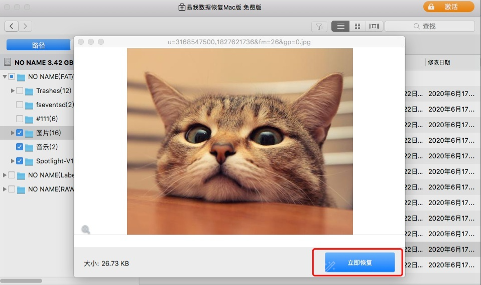 2、然后易我數據恢復Mac版將開始快速掃描以搜索已刪除的圖片,并在左側面板上顯示掃描結果。