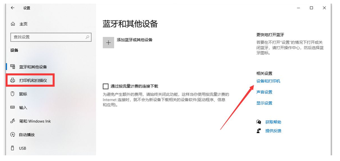 4、然后我們打開設置界面,再看到設備和打印機選項卡,找到并點擊它。
