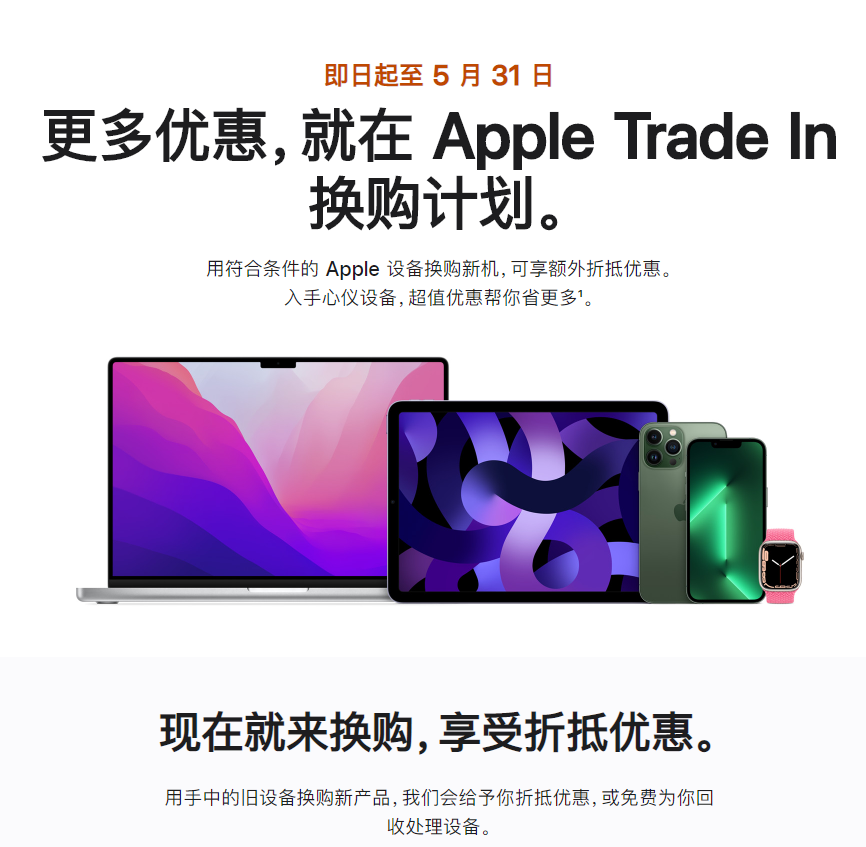 5 月 11 日消息,蘋果 Apple Trade in 換購計劃更新,國行帶來更多抵扣優惠。