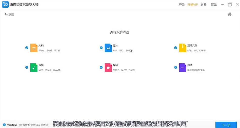 3. 在界面選擇需要恢復數據的文件類型。