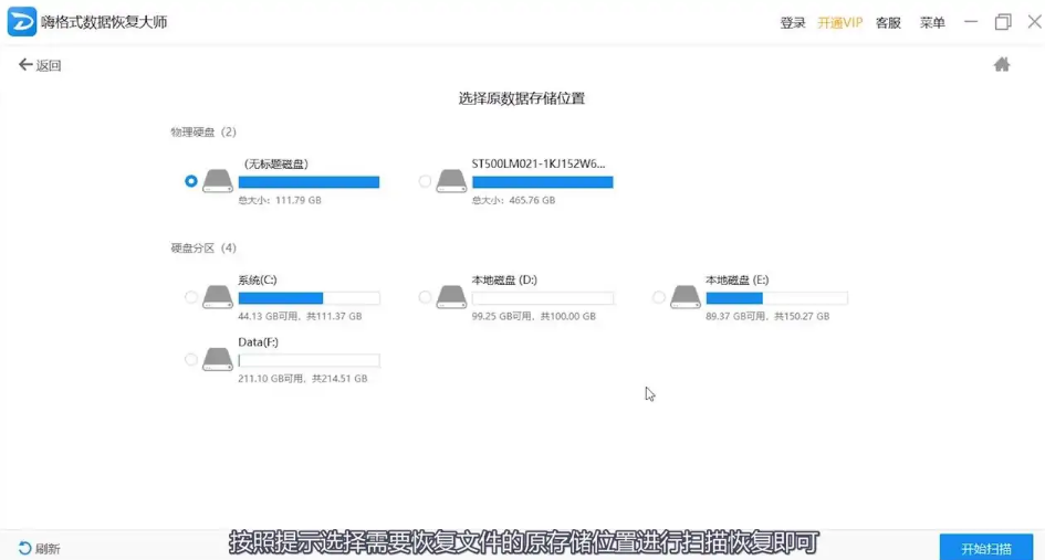 4. 然后按照給出的提示,點擊需要恢復文件的原存儲位置進行掃描恢復即可。