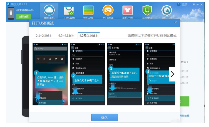 2、手機連接到電腦,在手機設置中找到USB調試開啟,這樣才能連接到刷機大師工具。