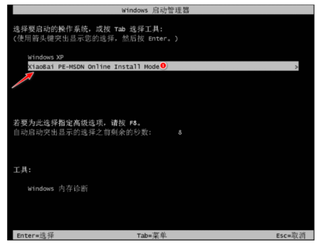 3、重啟后選擇XiaoBai-PE并進入WindowsPE系統,開始安裝系統。