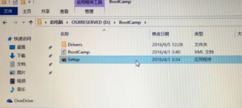 6、打開D盤進入BootCamp文件夾,選擇Steup.exe打開安裝。