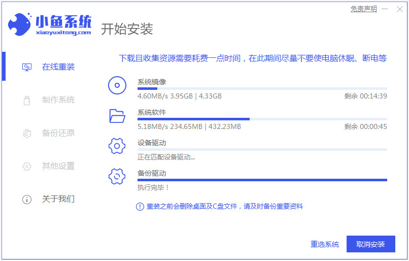 5、然后小魚裝機軟件會自動開始安裝我們選擇的系統。