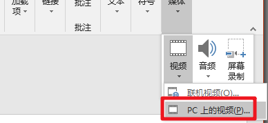 5、詢問要插入哪的視頻,選擇“PC上的視頻”
